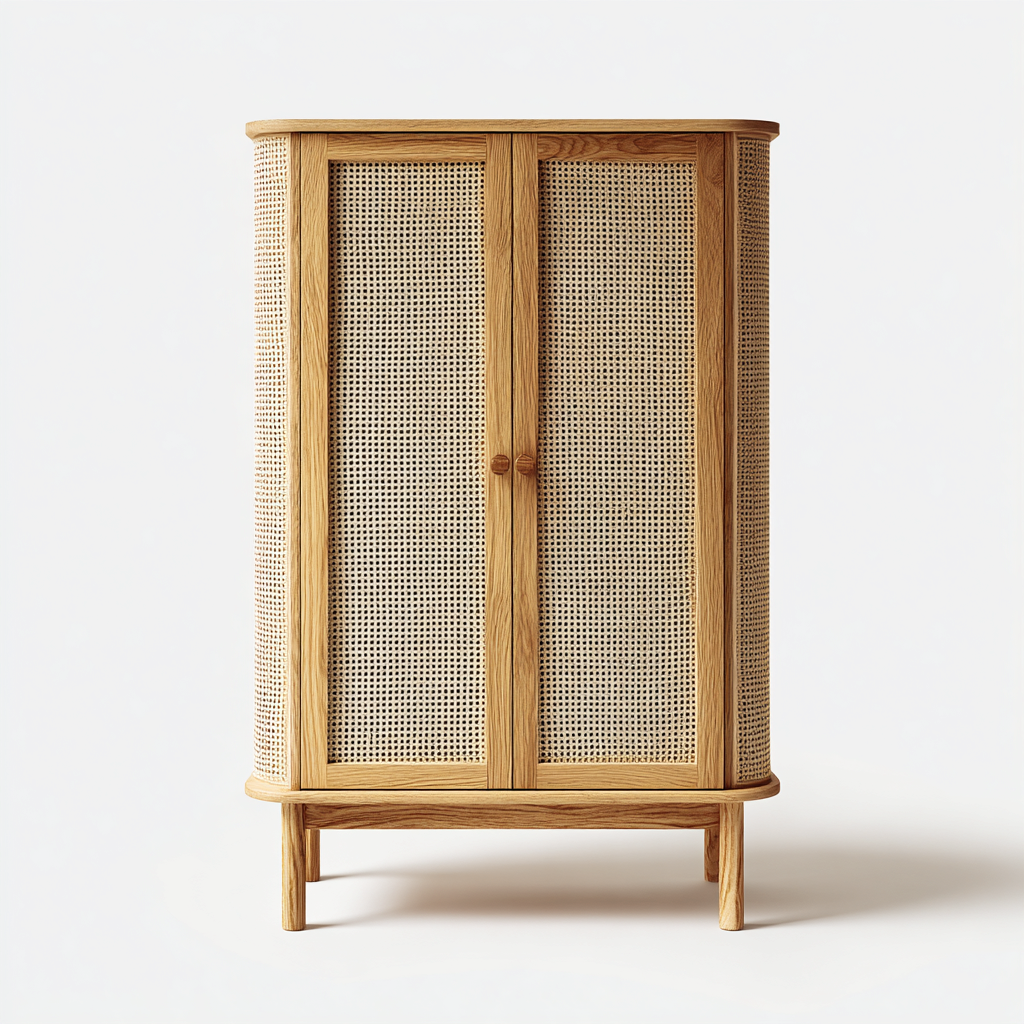 Armadio guardaroba per camera da letto legno e rattan 90x50x180 cm - Naturale - Stile contemporaneo