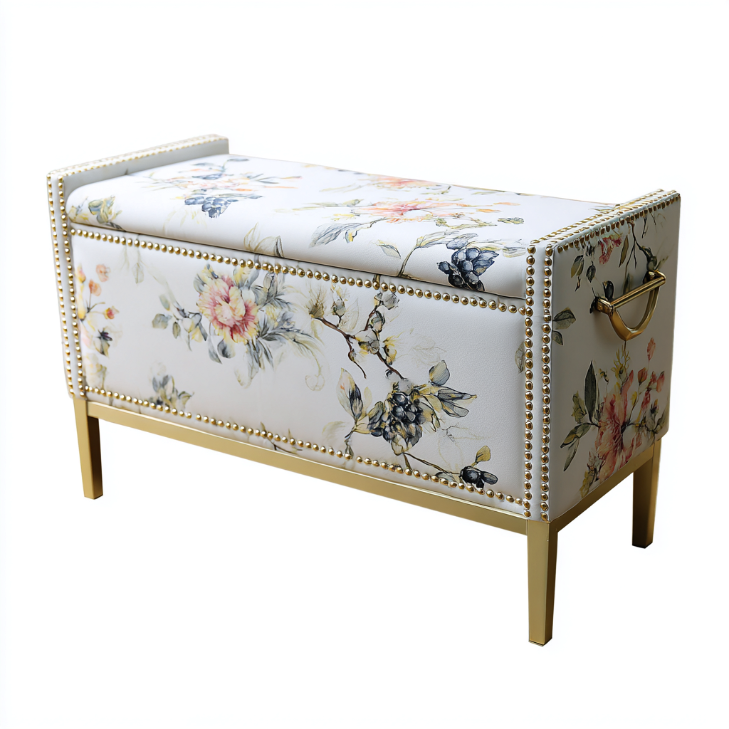 Panca da ingresso contenitore imbottita rivestimento tessuto 100x40x45 cm - bianco-oro - stile elegante