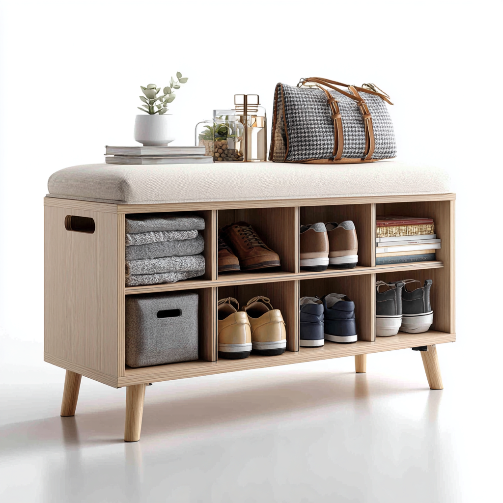Scarpiera panca in legno con seduta imbottita 110x35x50 cm - naturale beige - design moderno