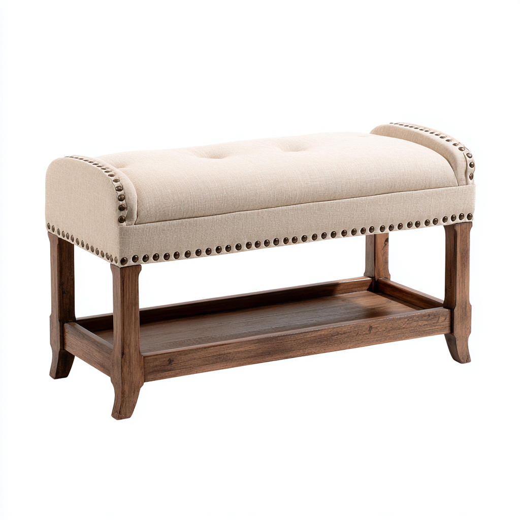 Panca da ingresso imbottita in tessuto 120x40x45 cm - beige-legno - stile classico