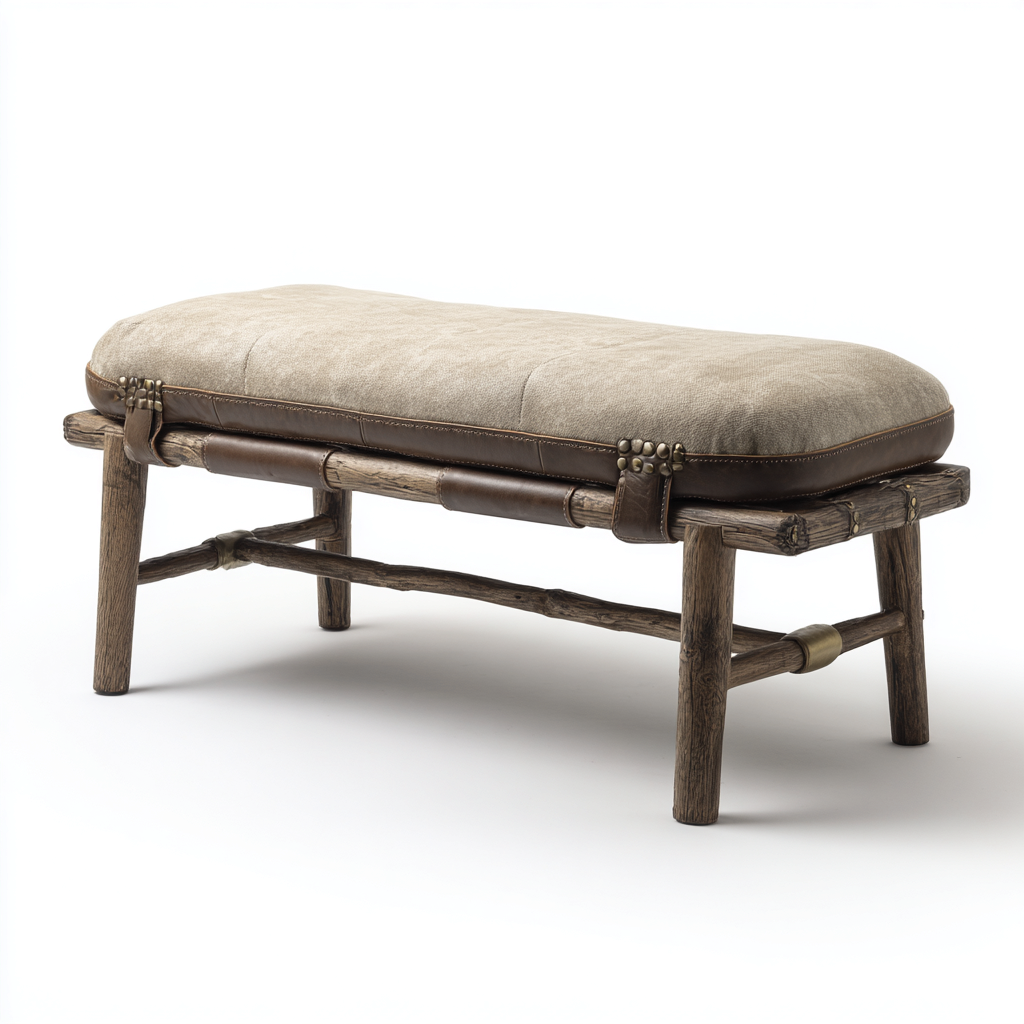 Panca da ingresso imbottita in tessuto 120x42x46 cm - beige-marrone - stile rustico