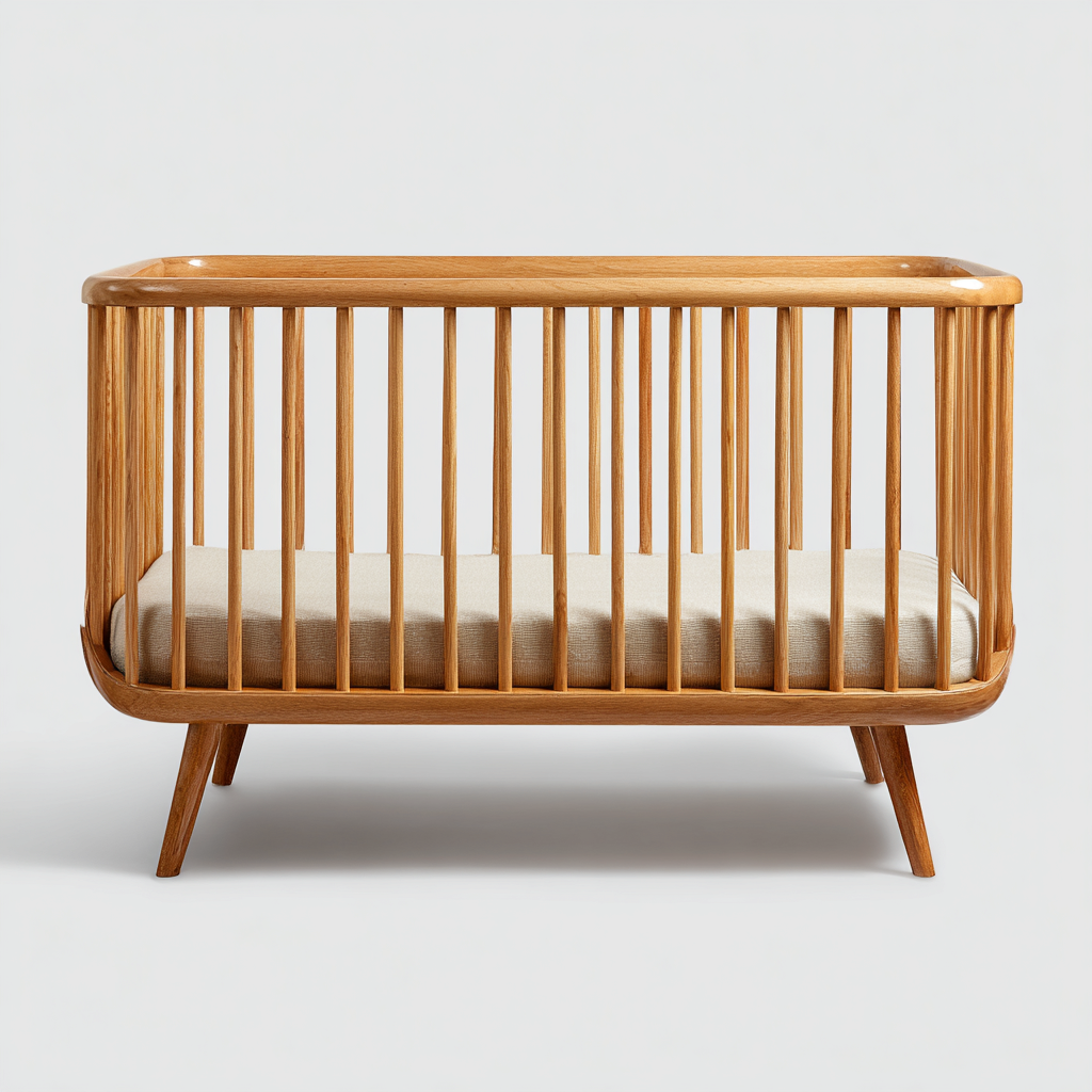 Lettino per bambini per cameretta legno massello 120x60x85 cm - Naturale - Stile mid-century