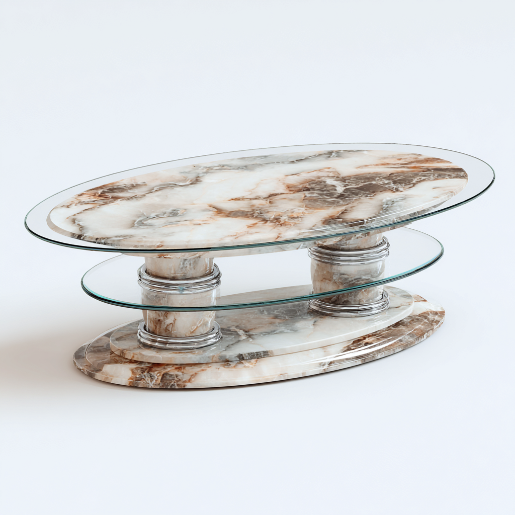 Tavolino da caffè ovale in marmo e vetro 120x65x42 cm - beige - stile elegante