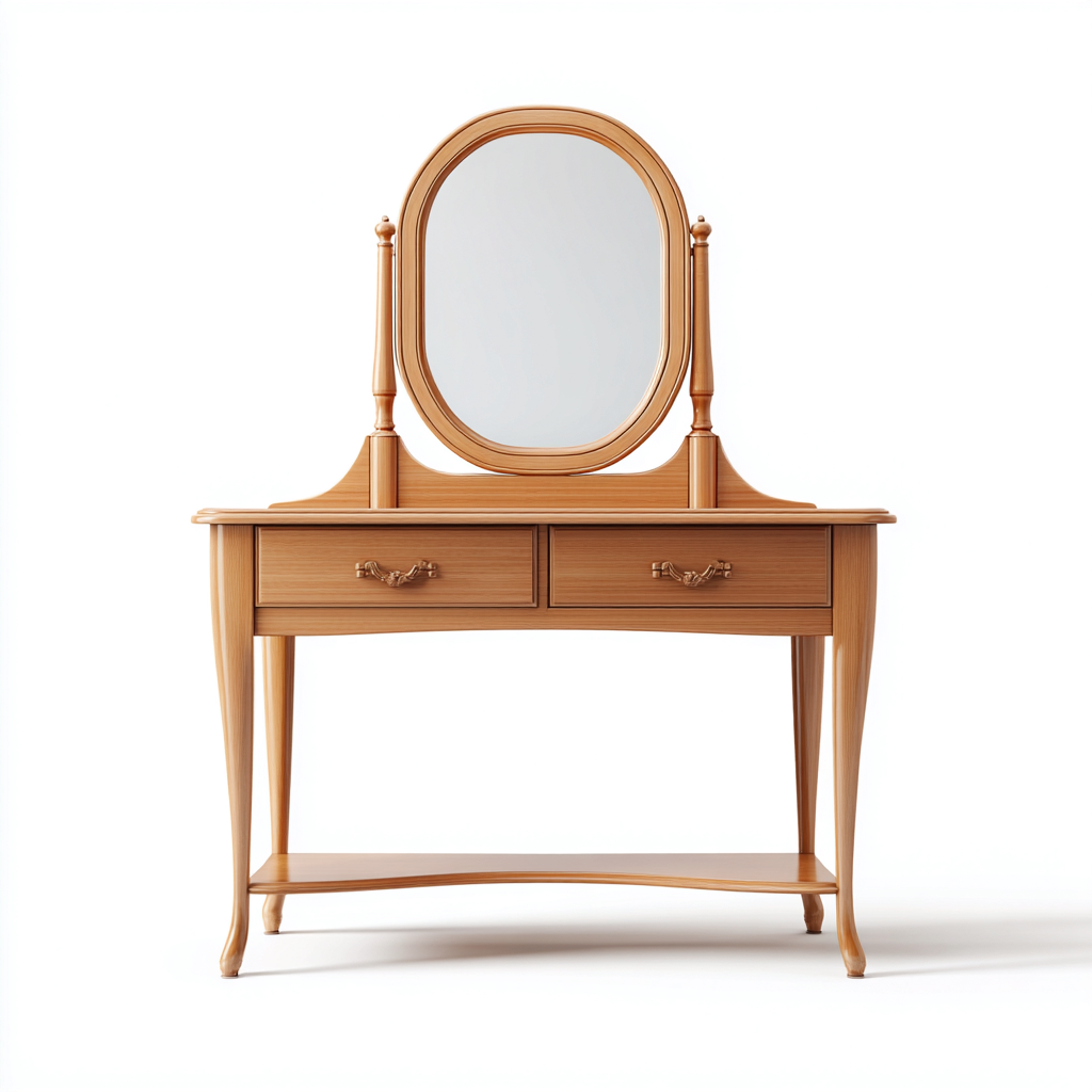 Toeletta con specchio ovale per camera da letto 95x45x135 cm - Legno naturale - Stile classico