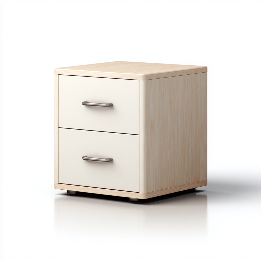La struttura è realizzata in pannelli in legno con finitura naturale, mentre i frontali dei cassetti sono rifiniti in colore bianco. Le superfici lisce e i bordi arrotondati garantiscono un aspetto ordinato e una buona resistenza all'uso quotidiano.