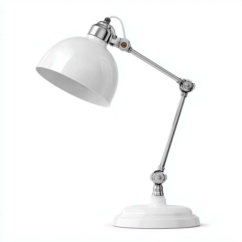 Questa lampada da tavolo è progettata per l'uso su scrivanie, tavoli da lavoro o comodini. Il design con bracci articolati consente di orientare con precisione la luce, offrendo un'illuminazione funzionale e mirata per studio, lavoro o lettura.